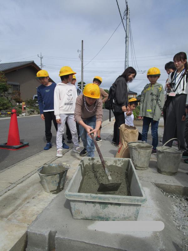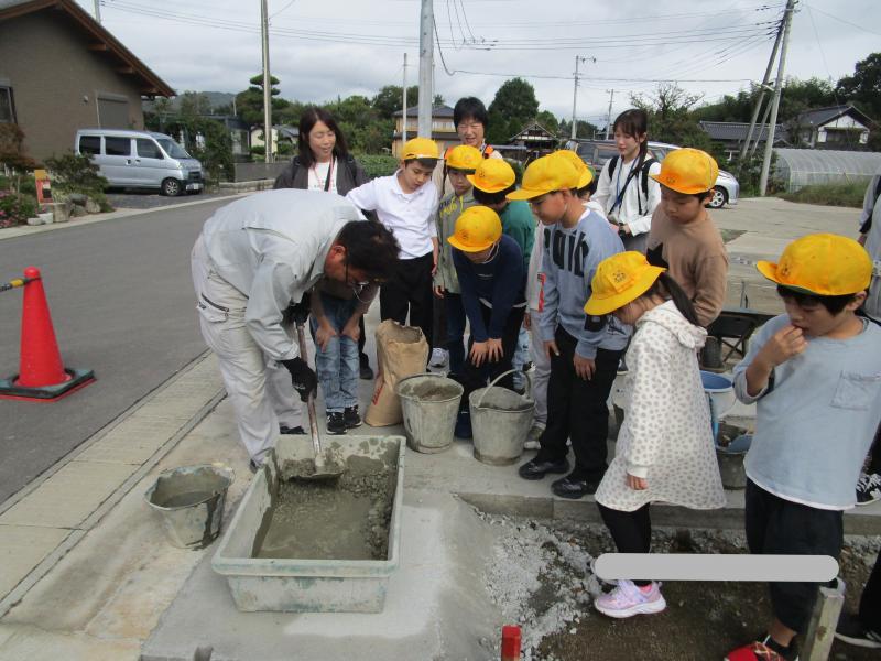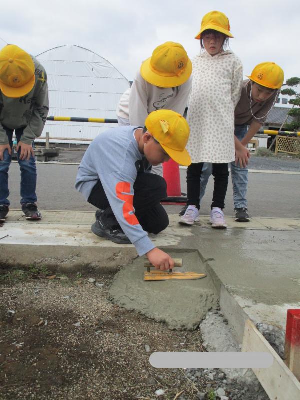 小学部4年生が生活科「どきどきわくわくまちたんけん」で石橋土木へ校外学習に行きました。コンクリートづくり体験やショベルカーの見学をした後、仕事で使っている道具や車についてインタビューしました。