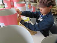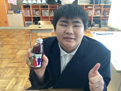 高等部の作業学習で、ぶどうジュースのラベル貼りをしました。ジュースにもパッケージにも生徒の思いが込められています。丸い形のラベル貼りは難しさがありましたが、一枚一枚丁寧に貼ることができました。