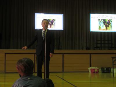 11月27日(木)の全校集会でぶどうジュースの贈呈式を行いました。このぶどうジュースは、OTAぶどうプロジェクトで栽培したぶどうを100%使用しています。ぶどう栽培の連携企業である常陸コミュニティデザイン(株)様から、できたてのぶどうジュースを児童生徒に寄贈していただき、みんなでぶどうジュースの完成をお祝いしました。