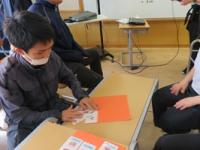 社会科では、「地域の安全」について学習しました。保護者の皆様に事前に実施した「東日本大震災に関するアンケート」をもとに震災当時の様子について「自助」「共助」「公助」のグループに分かれ、どのような備えや行動が必要かを考えました。まとめでは、「食べ物がない時どうするか」などカードを使って考えたり、学校にある防災グッズを実際に試したりとグループごとに学習した内容を発表し、自分たちが考える災害への備えについて確認し合いました。