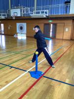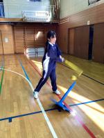 高等部1年生の保健体育では、ティーボールグループとダンスグループに分かれて活動しています。ティーボールグループでは、バットの持ち方やスイングの姿勢を確認しながらボールを打つ練習や、的に向かってボールを投げる活動をしました。ダンスグループでは、ヒップホップやバレエに取り組んでいます。映像を見ながら身体の動きを模倣し、リズムの特徴に合わせて身体を動かしました。