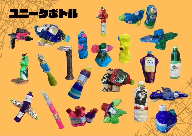 中学部2年生が美術「ユニークボトル」の制作を行いました。不思議な効能を持つユニークなオリジナルドリンクを想定し、それに相応しいユニークなボトルをデザインし形にすることができました。