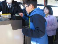 12月12日(金)に小学部5・6年生が常陸太田市役所と茨城交通主催による「バスの乗り方教室」に参加しました。現金での支払いの仕方、ICカード(いばっぴ)の使い方を体験し、実際に学校周辺を走行しながら、バスの中でのマナー等について学習しました。
