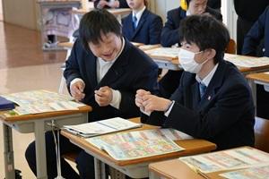 12/18(木)高等部第3学年家庭科で「金融教室」を行いました。中央労働金庫常陸太田支店の方をゲストティーチャーとしてお招きし、契約、消費者トラブルや家計管理についてワークブックを使いながら学びました。