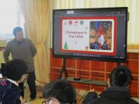 高等部1学年のALTによる授業ではアメリカと日本のクリスマスの過ごし方の違い等について学習しました。写真を見ながら食べる物や雪だるまの玉の数の違いなどに気付き楽しみながら学習することができました。