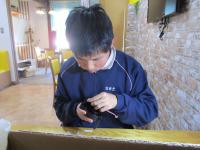 高等部第3学年自立活動の様子です。手指の巧緻性や自分の思いを伝えることなど生徒それぞれの課題に沿って学習しています。