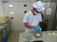 中学部1年生の職業・家庭で、ホットケーキミックスや卵を使って、電子レンジでできる簡単な調理を行いました。卵を割ったり、レシピを見て計量スプーンで砂糖などの分量を量ったりしながら、作ることができました。