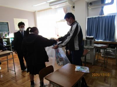 中学部1年生では、2学期のまとめとして、学年集会やレクリエーションを行いました。学年集会では、市展で入賞した生徒の表彰をしたり、冬休みの過ごし方について確認したりしました。レクリエーションでは、2つのグループに分かれ、バドミントンやボッチャを楽しみました。