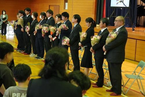 4/10(金)に離任式を行い、転退職された先生方をお見送りしました。児童生徒は心のこもった挨拶や寄せ書きなどで、感謝の気持ちを伝えました。